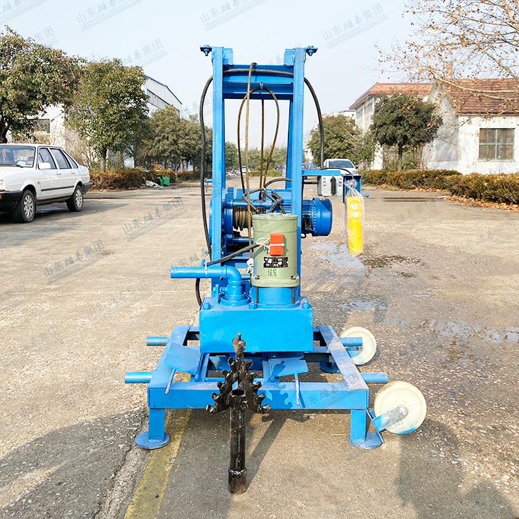 小型電動打井機廣泛應用于家庭打井,工廠打井,取生活用水,農田灌溉水井,安裝水空調,太陽能熱水器,工地打樁等。電源:單相220V電機,可調速,可正反轉。家用照明電就可以。
