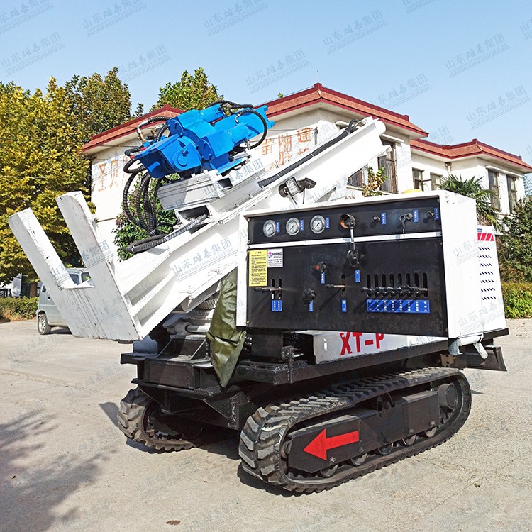 履帶式取土鉆機是我集團公司為滿足施工需求自行研發的一款中小型履帶式取土鉆機,該鉆機采用四缸發動機動力,整體結構緊湊,履帶式自動行走,可遙控,動力頭沖擊力強,打得深,可以滿足0-30米深度的土壤取樣工程需求。采用一體化動力頭設計,充分滿足取土作業標準,可以用亞克力管減少土壤二次污染,有效保持土壤原狀性,取樣后可用旋轉動力擴孔成井,一機多用。而且本機操作簡單安全性高,性能穩定,效率高,可以大幅減免土壤取樣人員的勞動力。