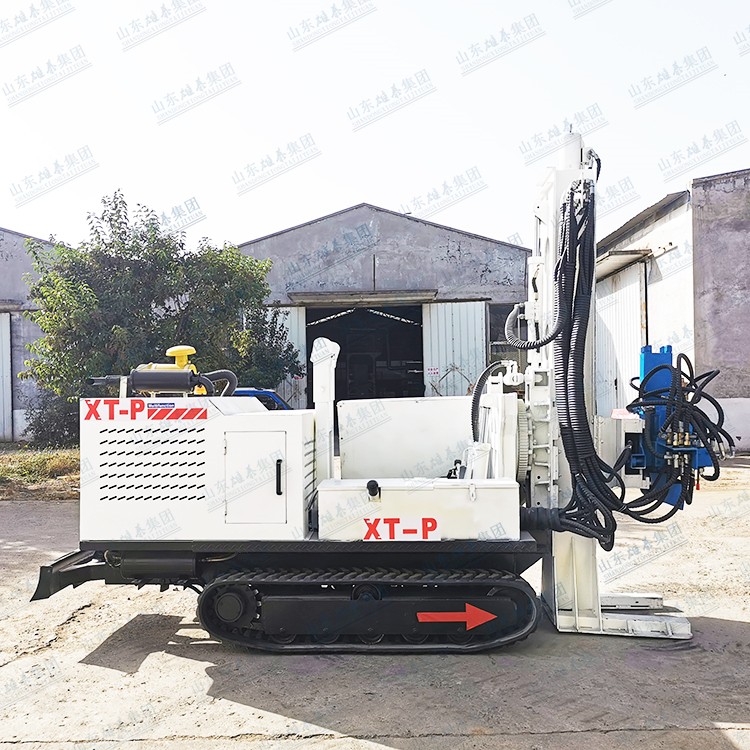 鉆機結構緊湊,重量輕動力強,采用液壓高支腿可以自行上下車,大臂旋轉調角度,前后移動,上下伸縮,采用一體化動力頭,動力頭可以左右移機方便提鉆,三馬達變量式運轉轉速扭力可調,并且沖擊頻率高土樣無擾動,無需水源。